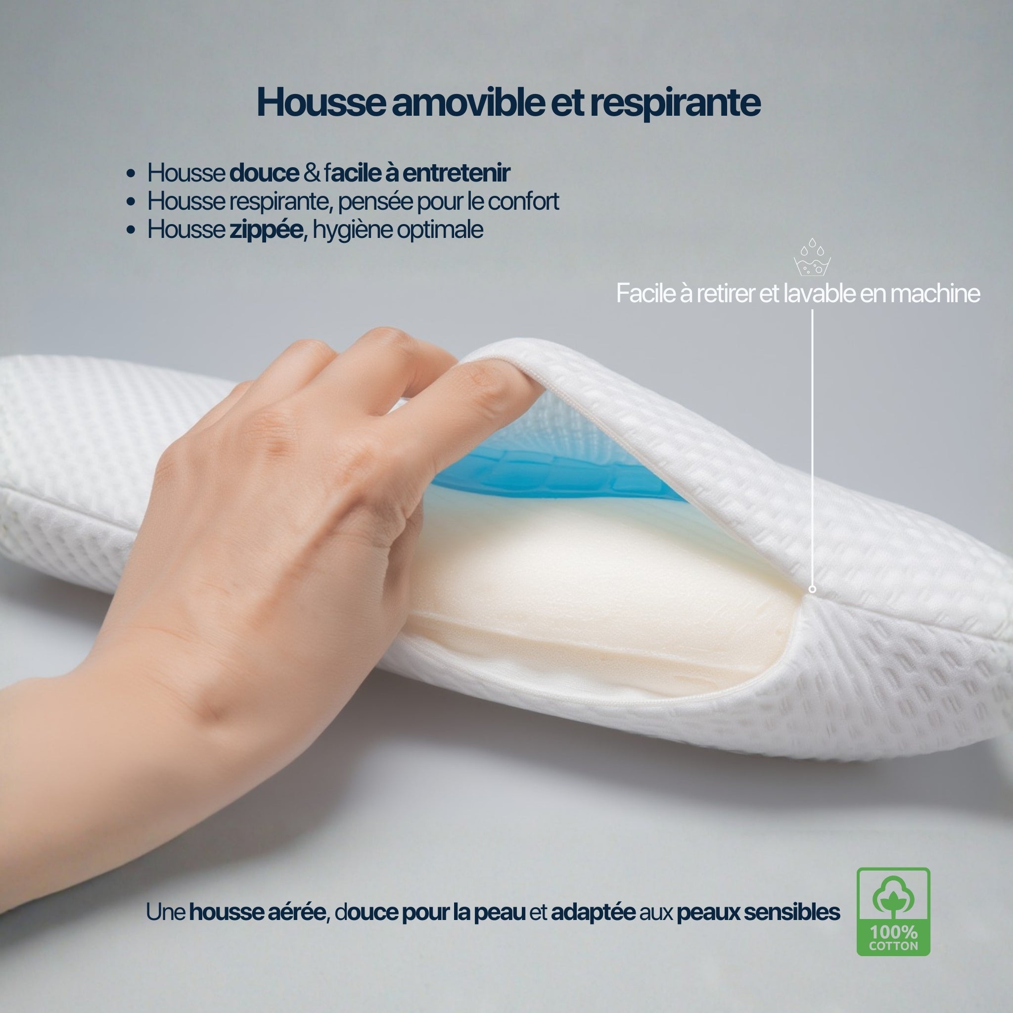 | Housse amovible, respirante et lavable |